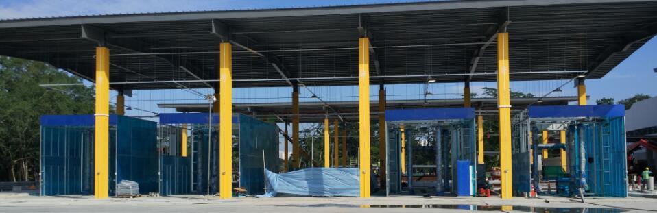 Nylon/foam brush | Hot-dip galvanized steel frame | High pressure water system | Banner sensor |