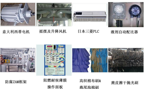此款擦干式隧道式自動(dòng)洗車機(jī)14刷包含: